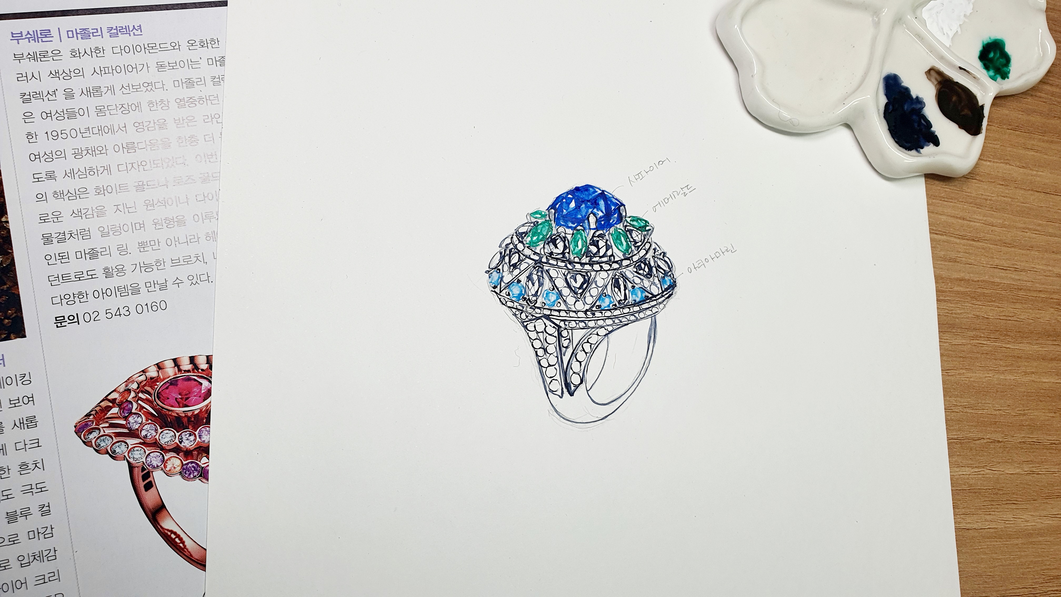 주얼리디자인렌더링은 주로 수채화를 이용해서 채색을 해줍니다